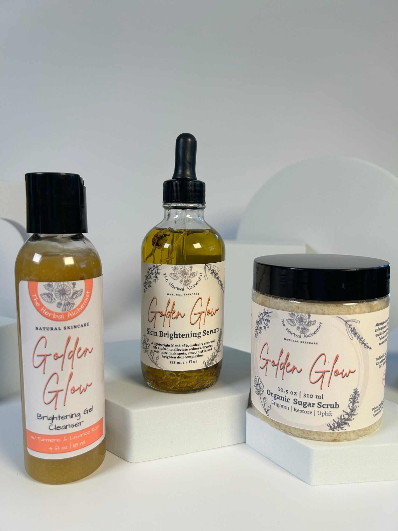 Get your glow on with this Golden Glow brightening duo ! This combo makes achieving gorgeous, glowing skin simple! Includes our Golden Glow Skin Brightening Serum & Golden Glow Facial Cleanser