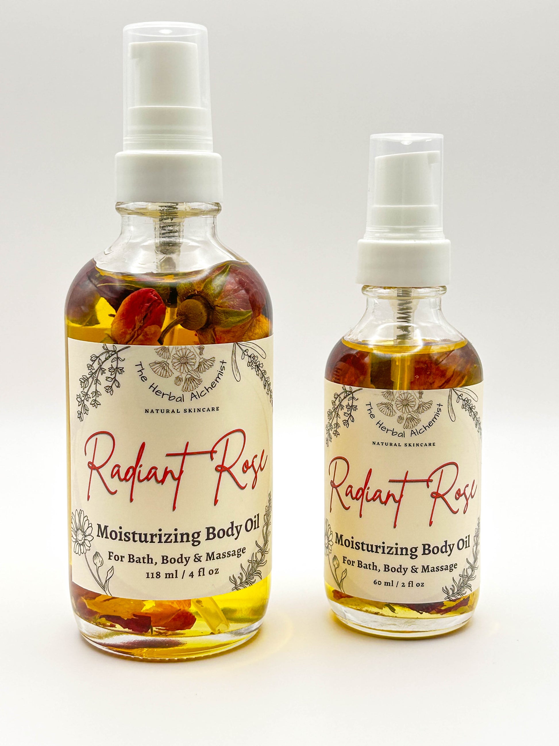 This rose body oil smells so good and feels great on my face and skin! Leaves your skin feeling hydrated and also safe for sensitive skin. You must get this and pair it with the Radiant Rose body butter!